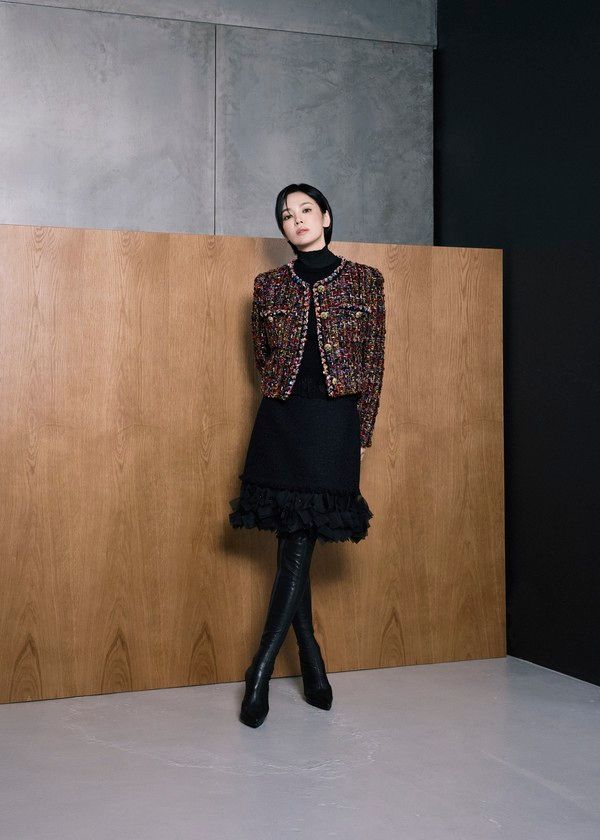 이 외에도, 송혜교는 다채로운 컬러감이 돋보이는 트위드 재킷과 프릴 디테일 니트, 블랙 스커트를 매치해 미샤의 정교한 디자인 감각을 보여줬으며, 레드 니트와 프린트가 인상적인 플레어 스커트로 연말 분위기가 물씬 풍기는 착장을 선보였다.
