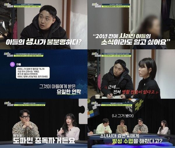 과연 20년 전 사라진 아들에게는 무슨 일이 있었던 것인지, 탐정단은 그를 찾아 의뢰인의 간절한 바람을 이뤄줄 수 있을지, 그 결과는 방송을 통해 공개된다.