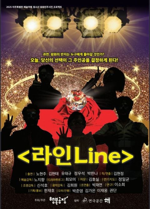 2009년 설립 이래 문화예술을 활용한 다양한 성찰과 나눔의 프로그램을 진행해 오고 있는 행복공장과 1997년 창단 이래 다양한 이슈의 토론연극 작업을 이어 있는 연극공간-해의 합작품 ‘라인’은 다가오는 새해 더 많은 청소년과 더 흥겹고 진지하게 평화 그리고 민주주의를 탐하는 공론의 장을 만들어 나가고자 한다.