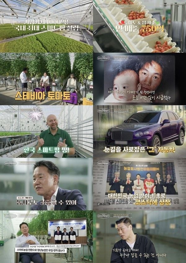 2023년에는 농업 분야 최초 코스닥 상장에 성공하며 기업 가치 1000억 원이라는 신화를 썼다. 이날 방송에서는 전국 최대 규모인 김호연의 5만 평 유리 온실이 최초로 공개됐다.