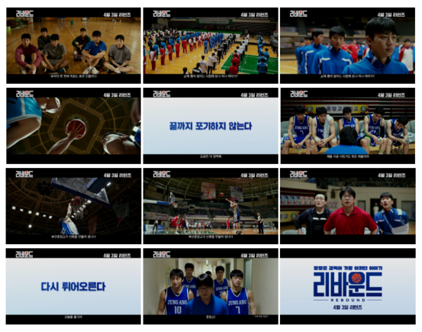 아무도 주목하지 않았던 최약체 팀이 끈끈한 팀워크로 성장해 가는 모습은 자연스레 응원을 이끌어낸다. “저 높은 곳으로 다시 리바운드. 끝까지 포기하지 않는다”라는 카피처럼 포기를 모르는 선수들의 집념과 뜨거운 순간들이 화면 가득 펼쳐져 넘어져도 다시 튀어 오르는 ‘리바운드’의 의미와 함께 깊은 여운을 전한다.