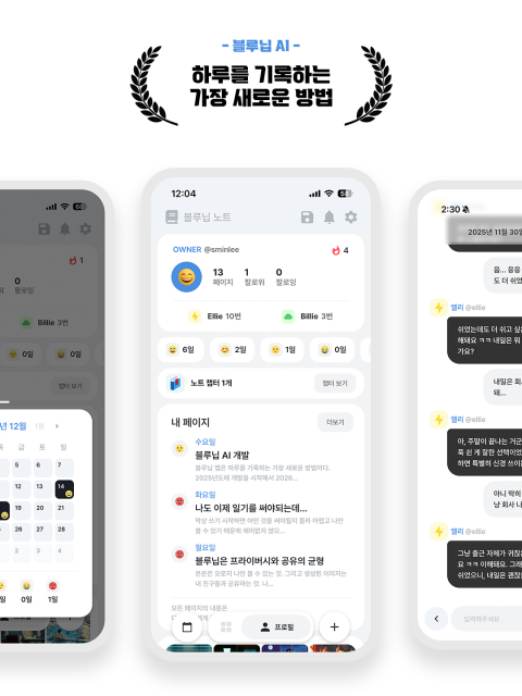 많은 사람들이 일기를 쓰고 싶어 하지만 실제로는 ‘무엇을 써야 할지 몰라서’, ‘귀찮고 재미가 없어서’ 꾸준히 이어가지 못한다. 블루닙은 이를 해결하기 위해 AI 대화형 기록 방식을 도입했다.