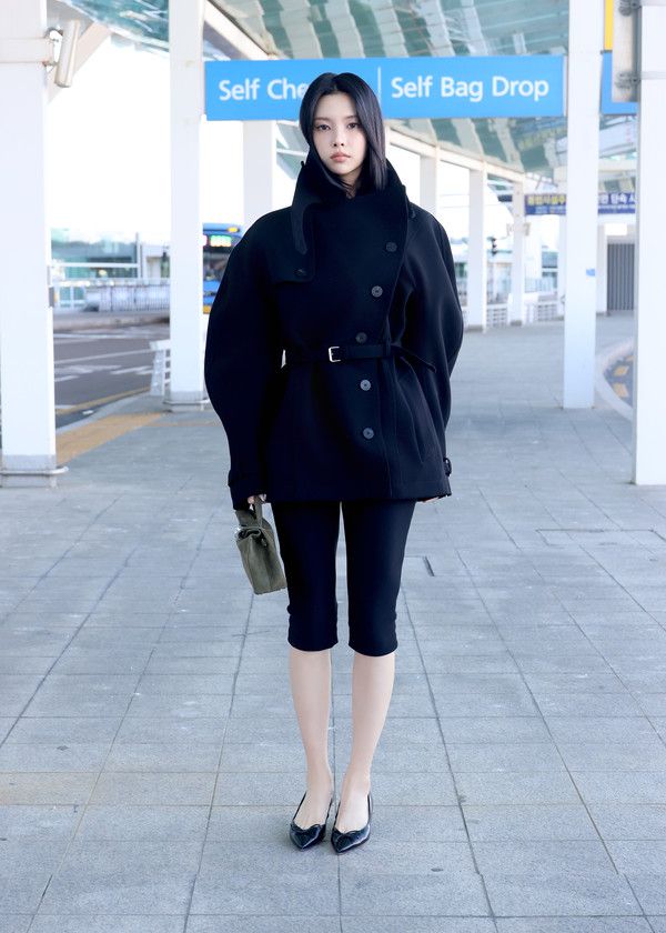 볼륨감 있는 소매 라인이 돋보이는 코트에 미니멀한 블랙 컬러의 투리스모(Turismo)핸드백과 블랙 롱부츠를 믹스매치하여, 한층 성숙하고 세련된 공항 스타일링을 선보였다.